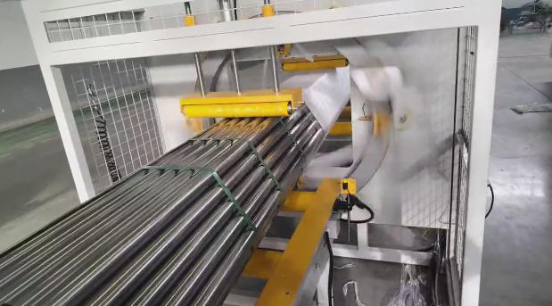 桶裝貨物-搖臂四周纏膜+水平打帶