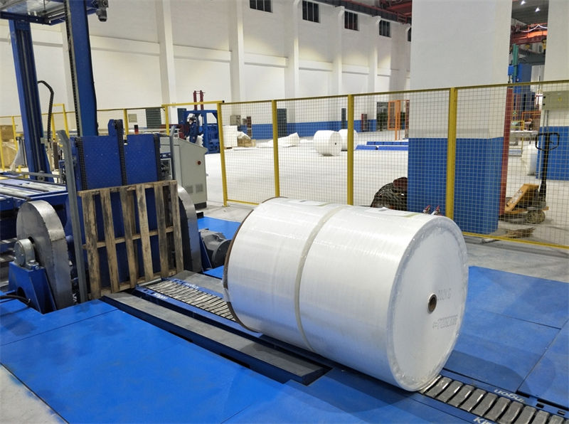 文化用紙-翻轉機+圓筒式纏膜機+噴