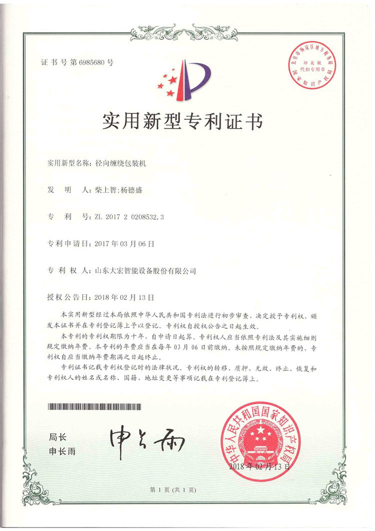 山東大宏智能設備股份有限公司成立于2005年4月,是一家專業(yè)從事制造、研發(fā)、設計自動化包裝設備和智能包裝物流解決方案為一體的綜合性國家高新技術企業(yè)、省“專精特新”企業(yè)。2016年3月18日新三板掛牌成功,股票簡稱:大宏智能,股票代碼為:836635。